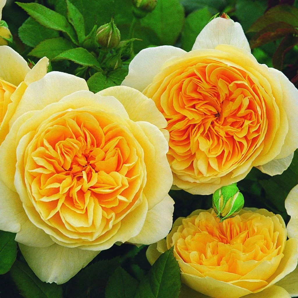Les fleurs de ce rosier anglais Teasing Georgia® sont d’une délicate beauté, bien doubles, avec leurs pétales centraux jaune profond, s’éclaircissant jusqu’au jaune citron clair sur le pourtour. Agréable parfum de rose Thé. En résumé, c’est un rosier robuste, parmi les plus fiables, très résistant aux maladies, bien remontant.